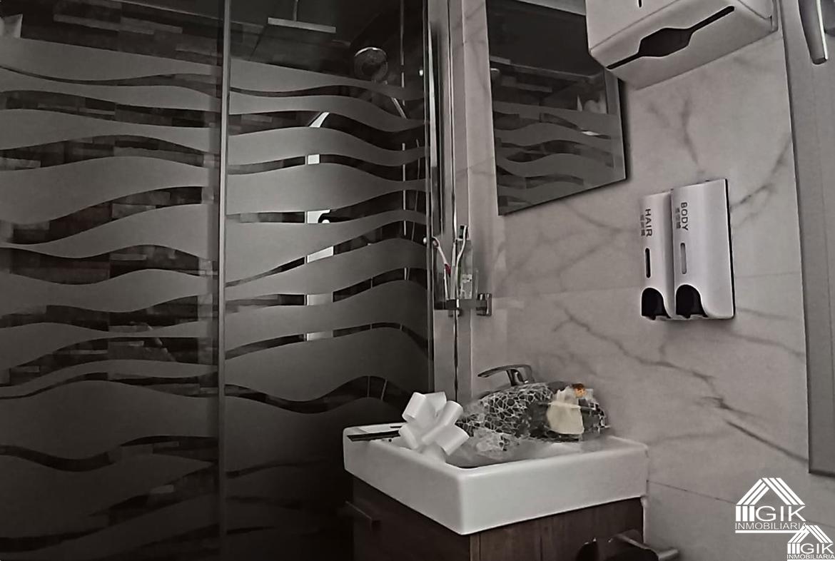 También en esta estancia existe otro baño de servicio para las habitaciones juveniles, totalmente equipado, siendo este el tercer baño que existe en la vivienda, todos ellos con acabados similares con un gusto limpio en tonos mármol blanco muy luminosos y duchas cerradas acristalas en formato piedra dando contrate al conjunto. Todos ellos con ventana grande con ventilación natural y el detalle que nos ha gustado mucho…grifo de wc para limpieza extra aguas mayores.