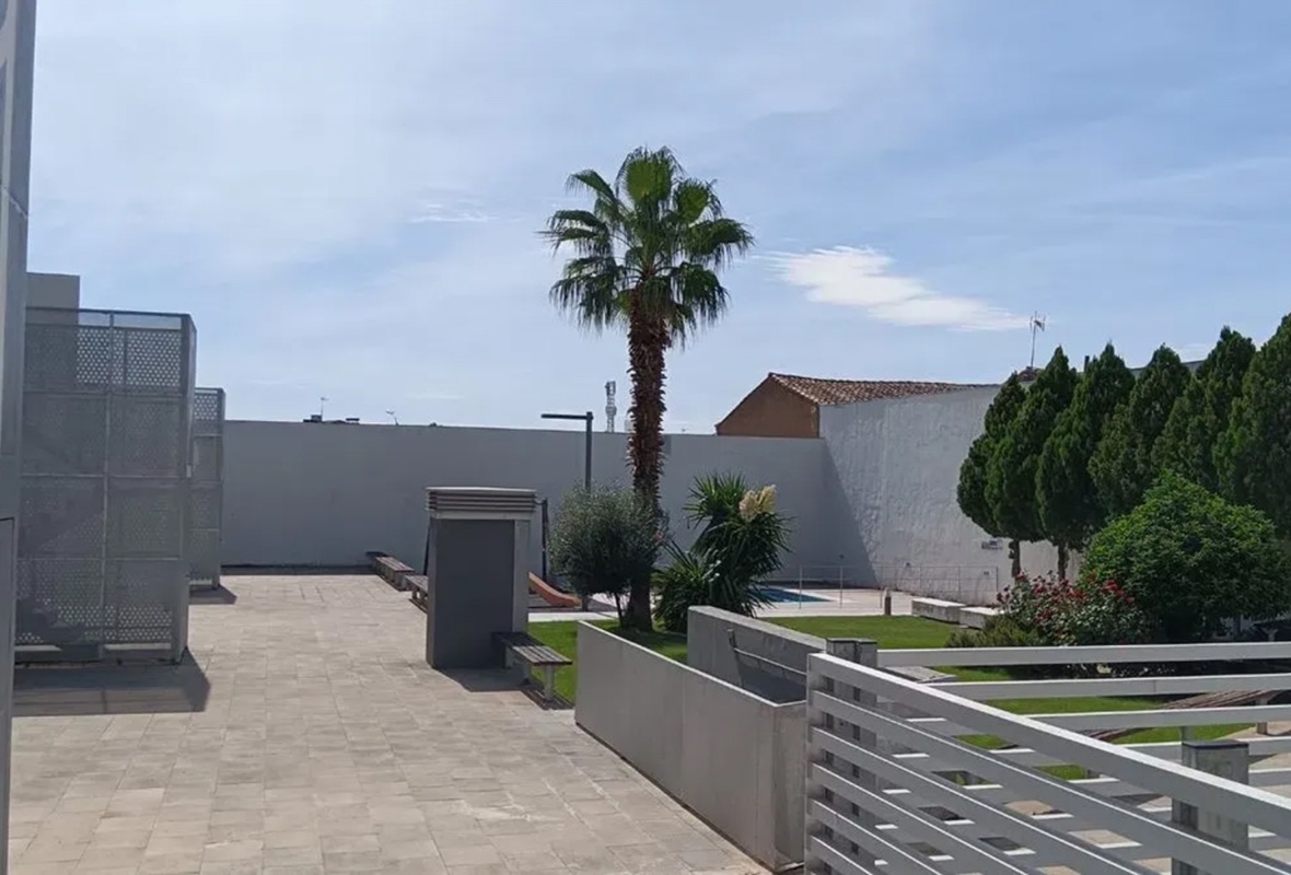 Salón comedor de buenas dimensiones por el que se puede salir a la terraza particular con toldo manual, barbacoa y puerta a zona común con piscina y parque para los mas pequeños.